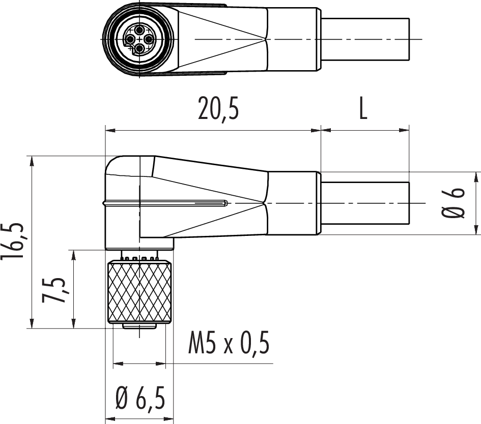 Polzahl: 4, nicht geschirmt, crimpen, am Kabel angespritzt, IP67, M5x0,5, 4 x 0,14 mm²