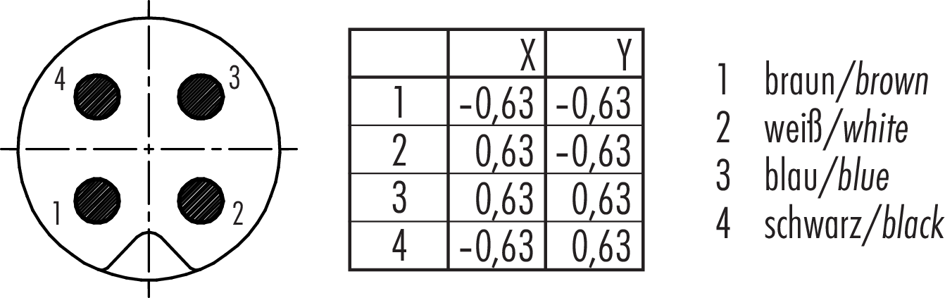 Polzahl: 4, nicht geschirmt, crimpen, am Kabel angespritzt, IP67, M5x0,5, 4 x 0,14 mm²