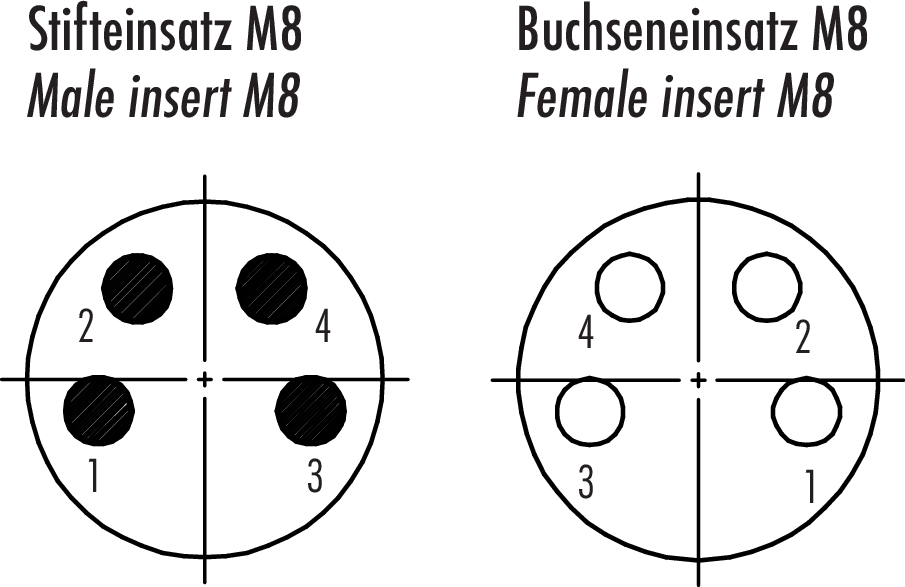 Polzahl: 4, geschirmt, steckbar, IP67, M8x1