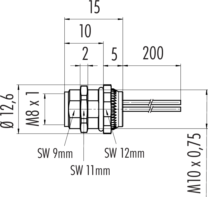 Polzahl: 3, nicht geschirmt, Litzen, IP67