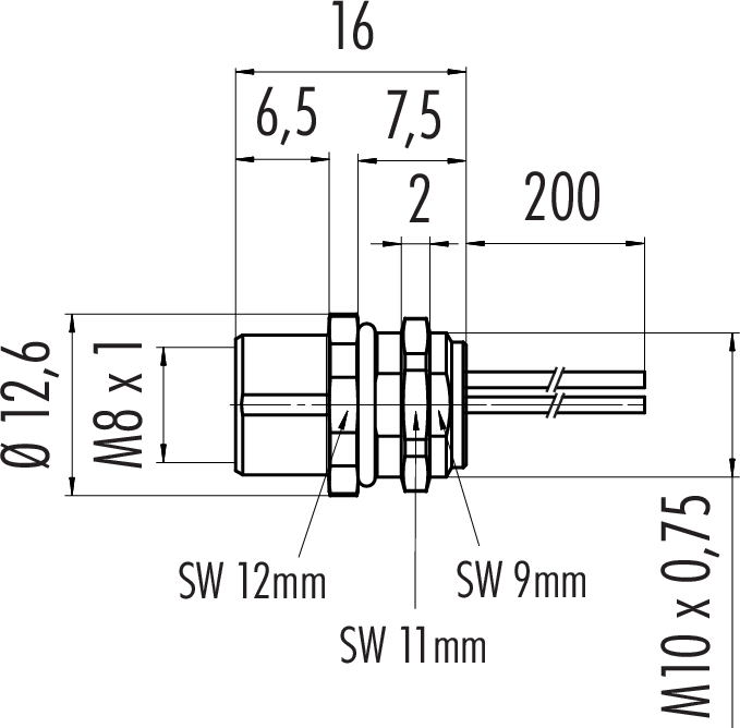 Polzahl: 3, nicht geschirmt, Litzen, IP67