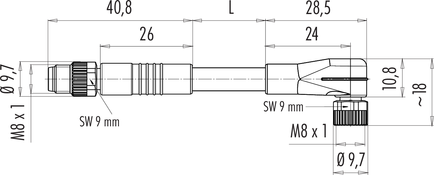 Polzahl: 4, nicht geschirmt, crimpen, am Kabel angespritzt, IP67, M8x1, 4 x 0,25 mm²
