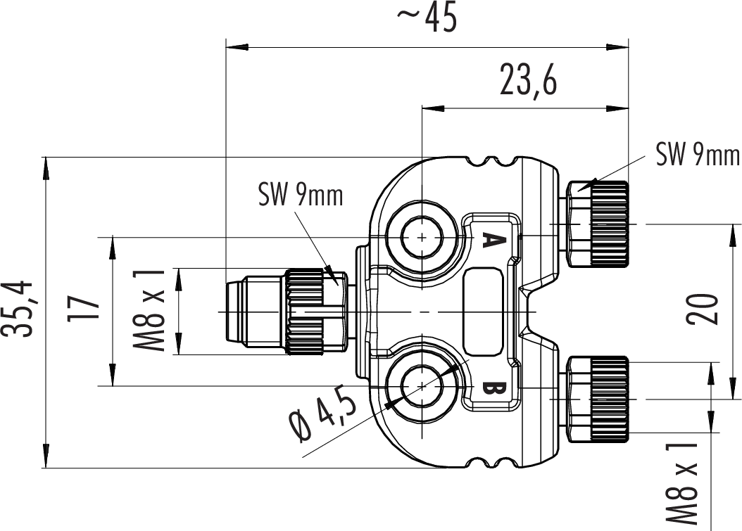 Polzahl: 4/3, nicht geschirmt, steckbar, IP67, UL listed, M12x1