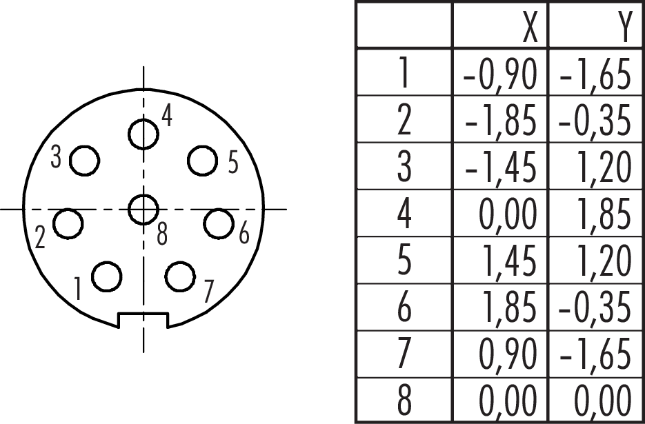 Polzahl: 8, 4,0 – 5,0 mm, nicht schirmbar, löten, IP40