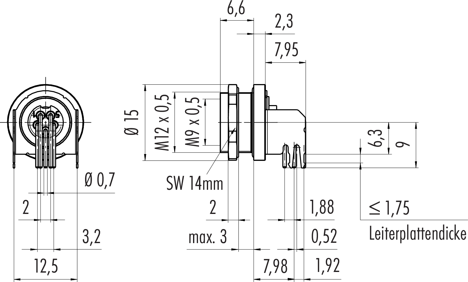 Polzahl: 5, schirmbar, tauchlöten, IP67