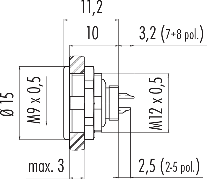 Polzahl: 5, schirmbar, löten, IP67