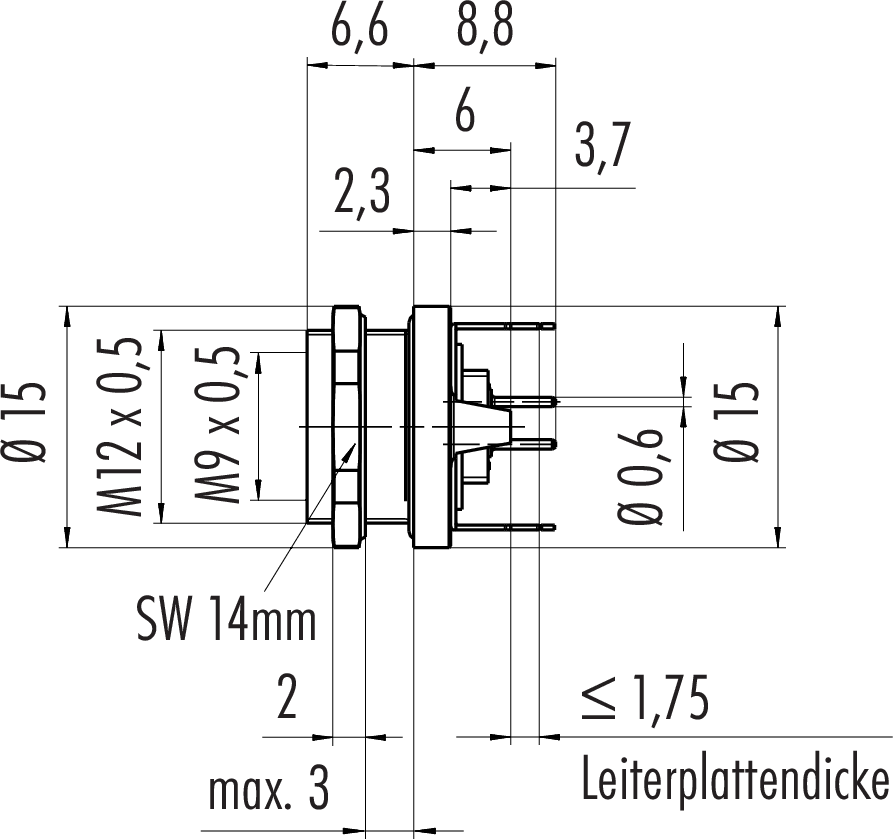 Polzahl: 8, schirmbar, tauchlöten, IP67