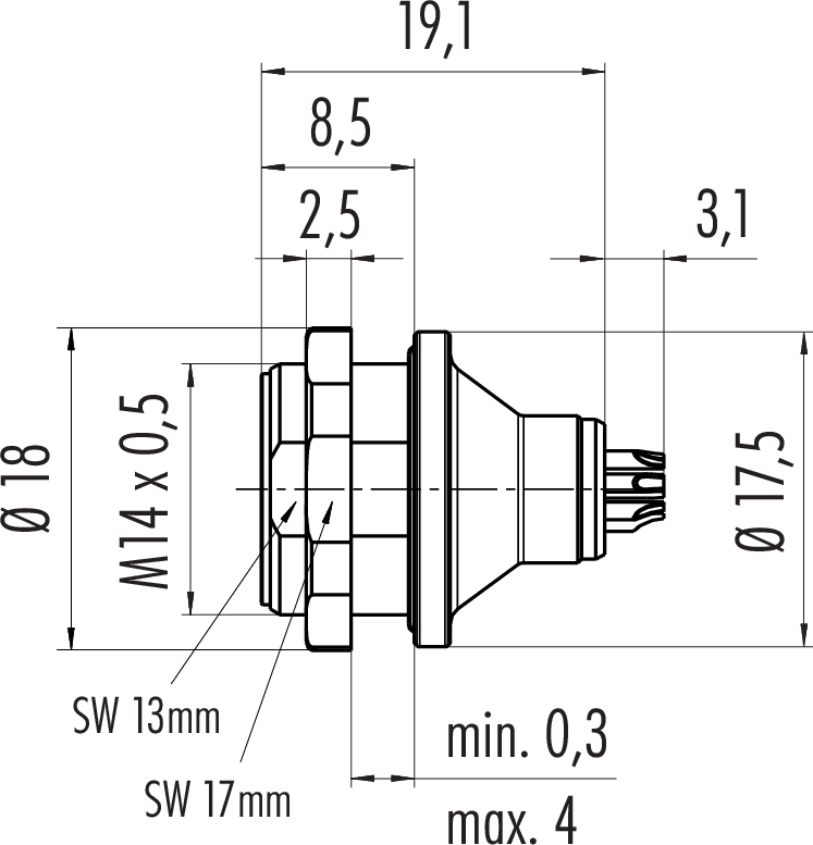 Polzahl: 3, nicht schirmbar, löten, IP67