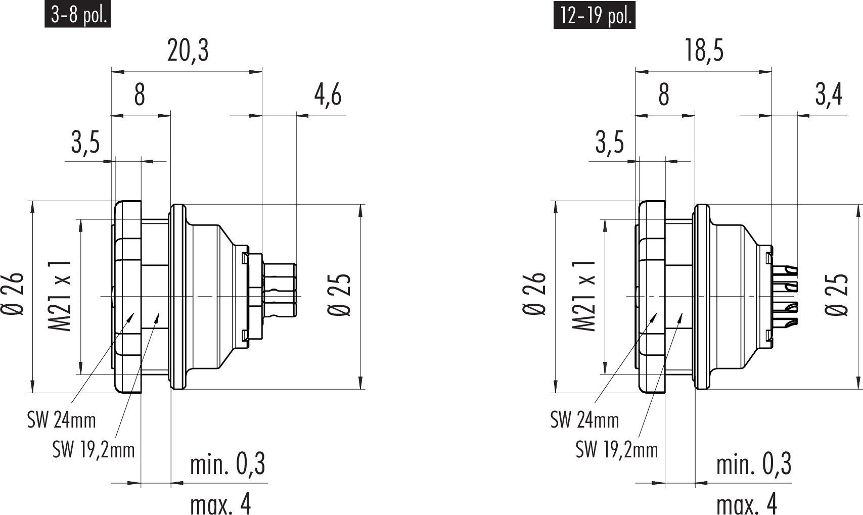 Polzahl: 14, nicht schirmbar, löten, IP67