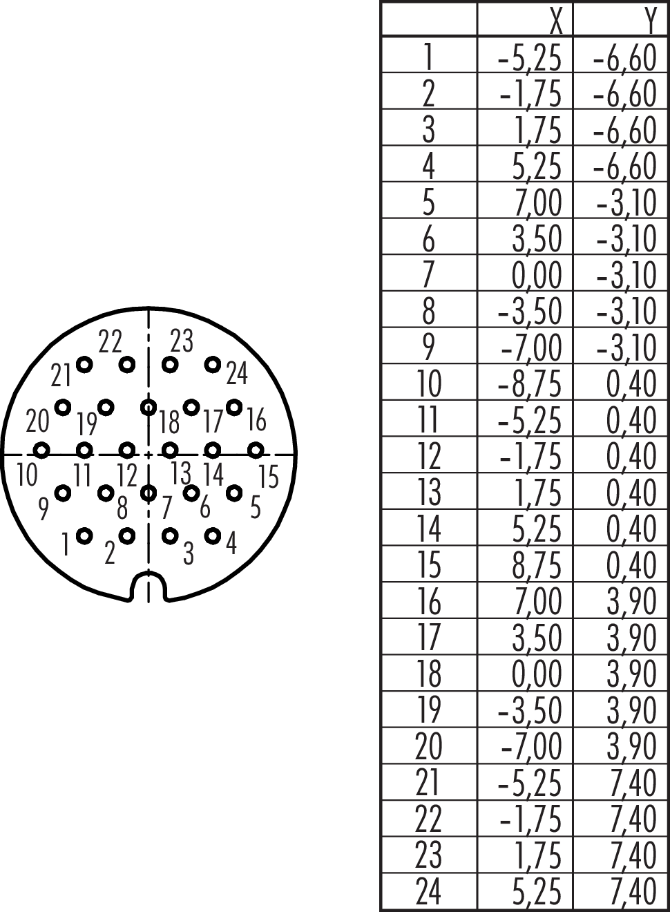 Polzahl: 24, 10,0 – 12,0 mm, nicht schirmbar, löten, IP65
