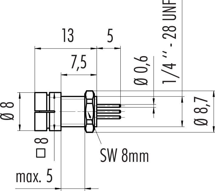 Polzahl: 3, nicht schirmbar, tauchlöten, IP40