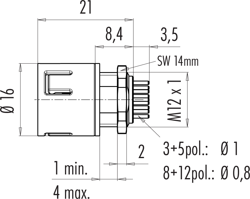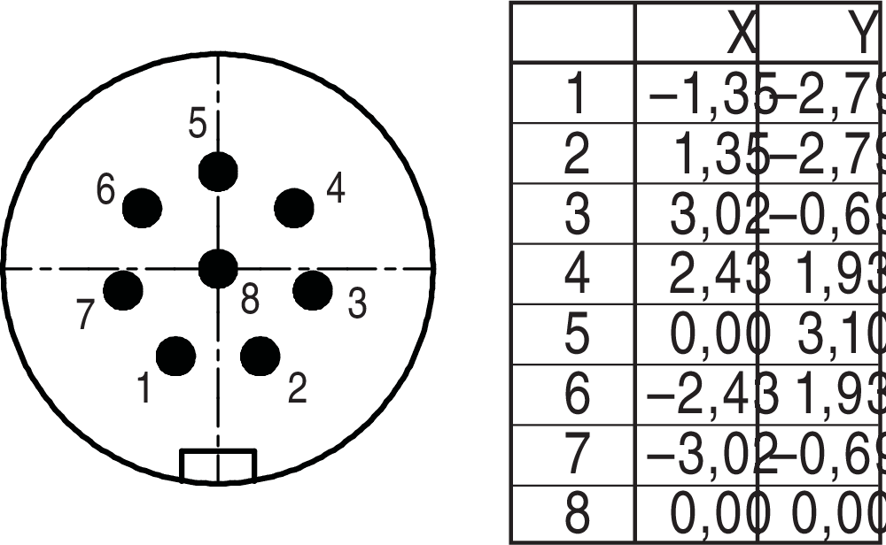 Polzahl: 8, nicht schirmbar, tauchlöten, IP67, VDE